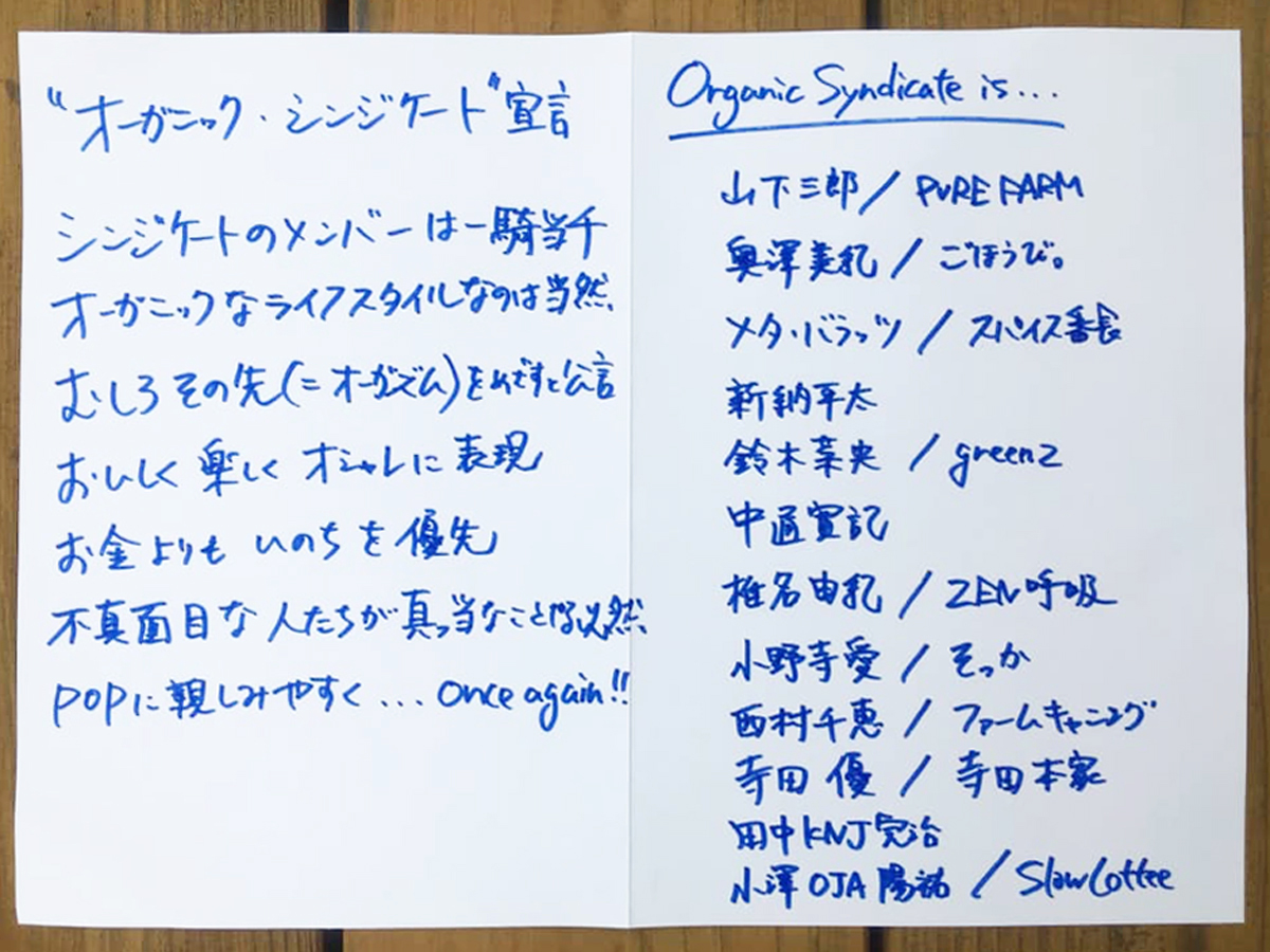 ー郡上で生活してみて、住み心地など変化はありますか? 小澤 変化というか、郡上との対比で東京はほどよいサイズをもう超えていると改めて思いました。満員電車とか、異常な世界だと思うんですよ。さらに助長されているから、はみ出る人がいっぱいいると思うんです。そういう人たちに「別にこぼれ落ちても大丈夫だよ」って早く都会から「ドロップアウト」した身から言いたいです。 ーそういえば、5年前に宣言された「オーガニックシンジケート」の仲間たちは、今はどうされていますか。