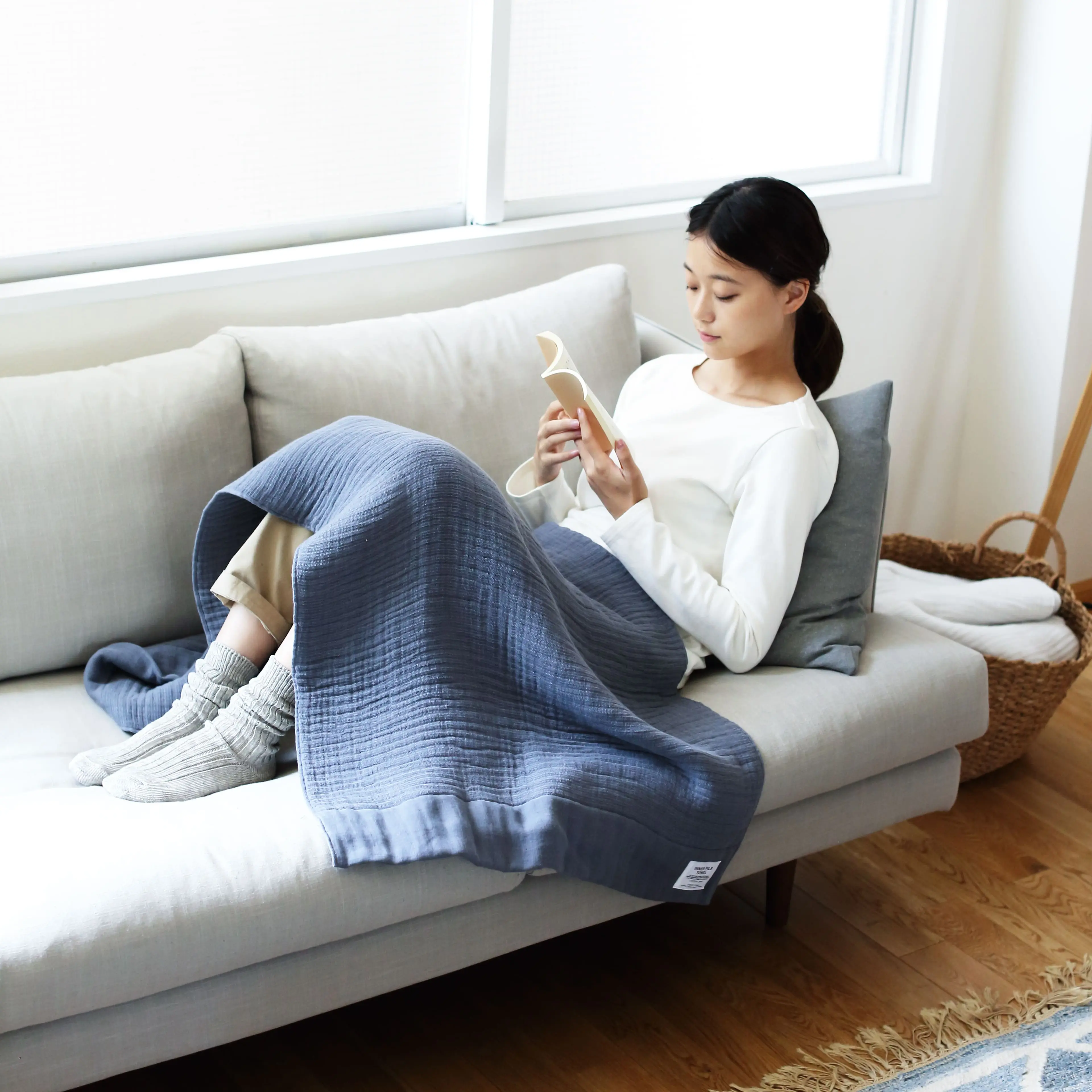 水分をすっと受け止めながら、ブランケット代わりとしても心地よく寄り添い、日常のくつろぎ時間をやさしく支えてくれます。
